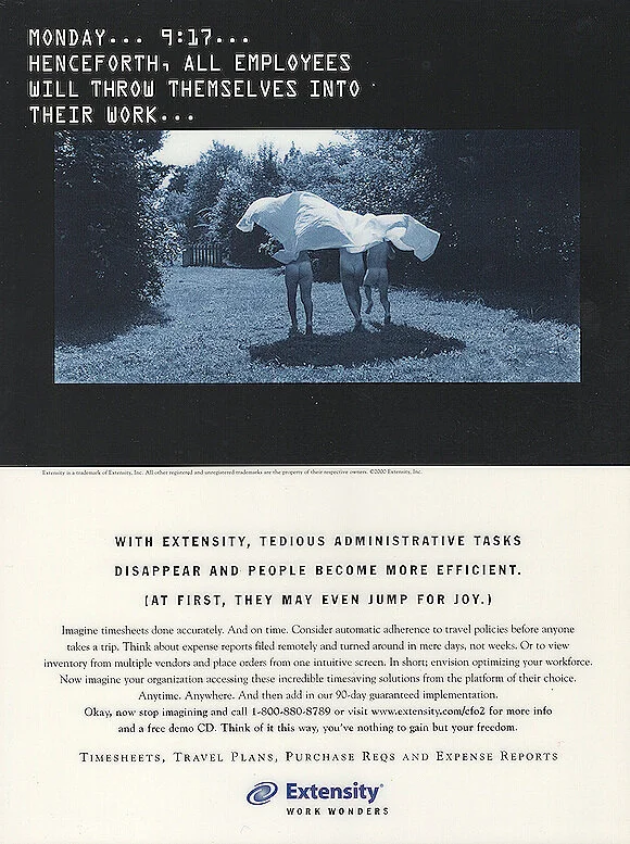Extensity was about to go public, so they needed an ad campaign to help raise awareness, evolve the brand, establish positioning, and lay the groundwork for the IPO.
